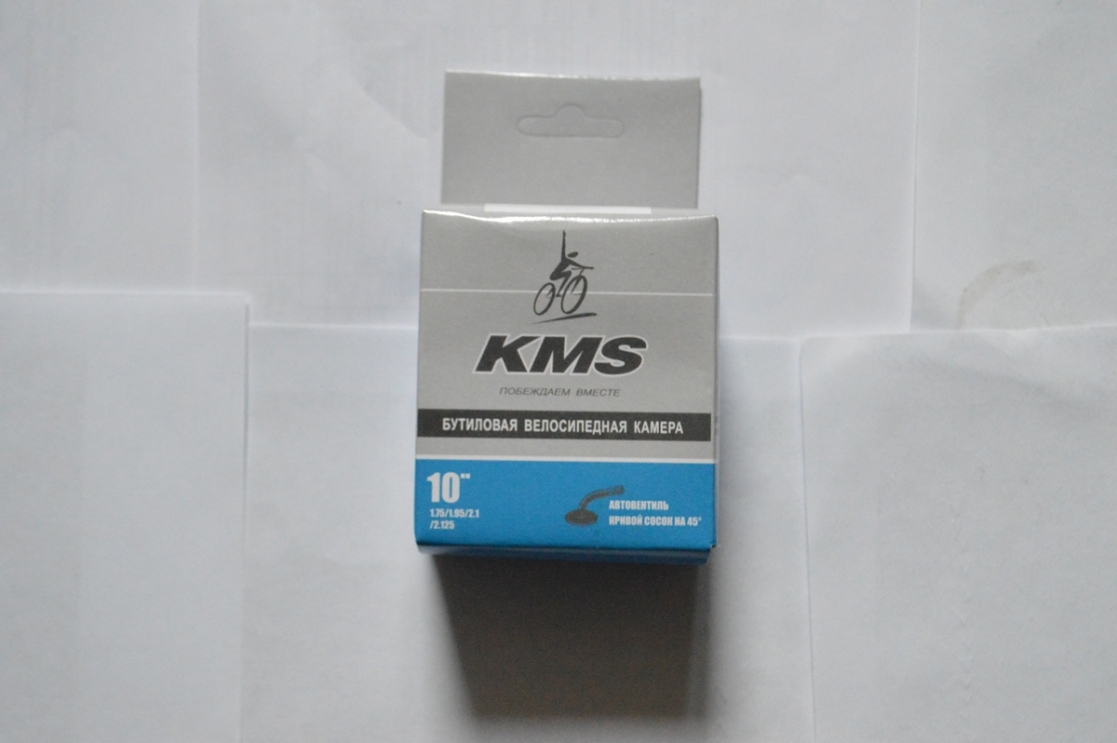Бутиловая велосипедная камера 10" x 2 A/V, инд. yпак., русский дизайн, бренд "KMS"