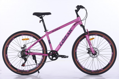 Материал рамы алюминий Тип тормозов дисковый механический Диаметр колес 26 Размер рамы 15" Вилка # амортизационная с регулировкой ход 60 мм пружинная Количество скоростей # 7 Передний переключатель # - Задний переключатель # Shimano TZ 500 Передний тормоз # дисковый mech. disc 160 механический Задний тормоз # дисковый mech. disc 160 механический Манетки # Shimano ST-EF 500 рычажковый Шатуны # HDL 1ск. 32 T Каретка # картридж Задние звезды # ATA 7sp 14-28T Втулки # steel на промах Покрышки # 26*2.125 с коричневой полосой Обода # алюминий двойной LORAK Цепь # KMC C030 Руль # Lorak 580W*2.2T Вынос # резьбовой Подседельный штырь # Zoom 27.2*300MM Рулевая колонка # резьбовая Седло # Lorak Junior Педали # пластик Вес # 14,9 кг
