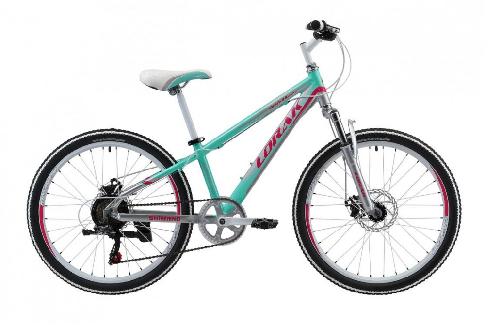 Lorak Shark 24 White - подростковая модель для девочек с колесами 24 дюйма. Удобные переключатели типа триггер, заниженная геометрия рамы, мягкое седло и дисковые тормоза. - Рама – алюминиевый сплав - 6 или 7 скоростей - Оборудование Shimano Tourney - Обода – двойные анодированные в цвет дизайна - Тормоза- дисковые JAK-8.