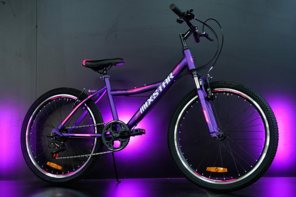 MIXSTAR Soft 24" - отличный детский велосипед. Подойдет детям в возрасте от 9 лет при росте от 135 см. Удобная посадка, регулируемый по высоте руль, мягкая вилка. Удобные рычажковые переключатели. Дополнительный бонус - подножка в комлекте. Тормоза ручные - тип V-Brake.