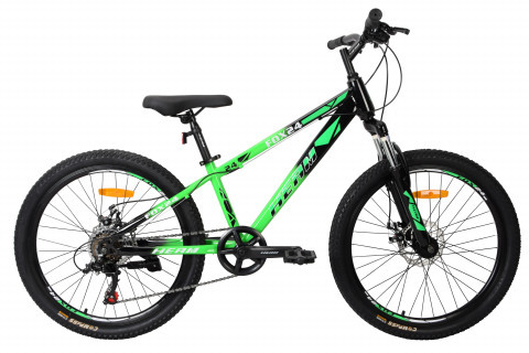 Материал рамы: сталь Тип тормозов: дисковый механический Диаметр колес: 24 Размеры 10.5" Цвета Зелёный Вилка амортизационная Задний переключатель Shimano TZ-500 Передний переключатель - Манетки Microshift TS-38-6 Шатуны (Система) сталь Задние звезды ATA 6ск. Цепь KMC Каретка сталь картридж Тормоза disc механика ротор 160мм Покрышки Wanda 24" Втулки сталь Обода ALLOY двойной высокий Рулевая FP Вынос сталь регулируемый Руль steel Грипсы black Седло YBN Педали Plastic Подседельный штырь steel