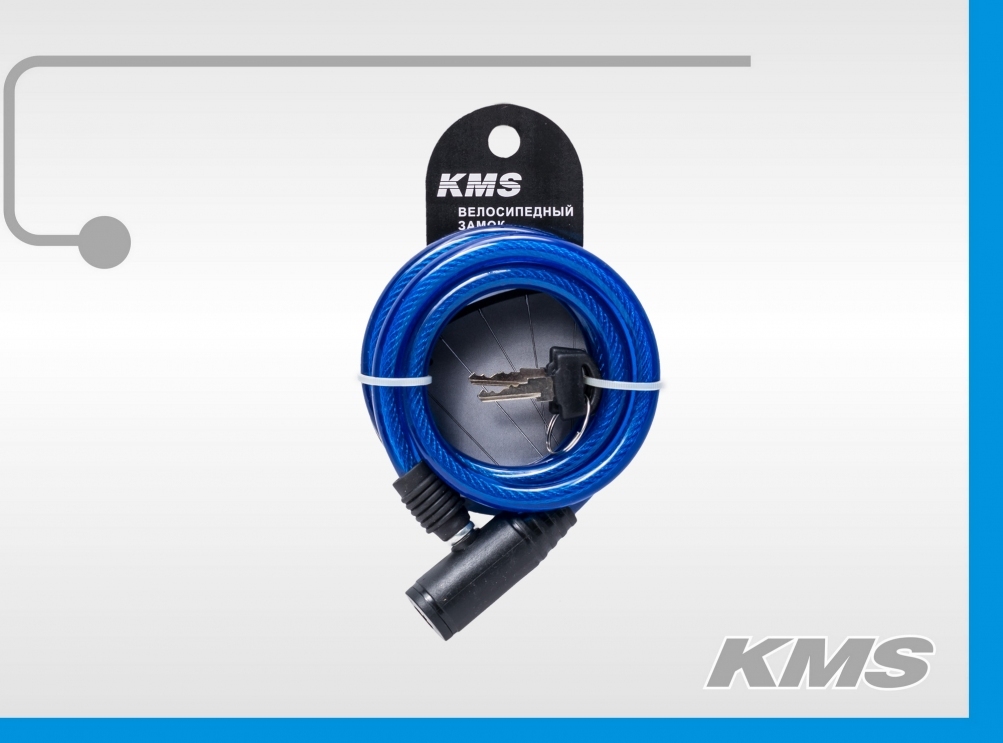 Велозамок "KMS", трос Ø 10x1000мм, с ключом, 4 цвета.