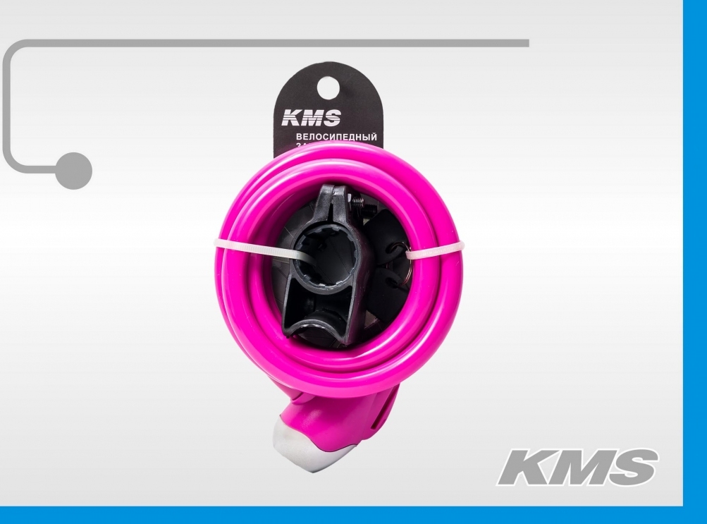Велозамок "KMS", трос Ø 12х1500, с быстросъемным креплением, 6 цветов , инд. упак., модель 2016 года.
